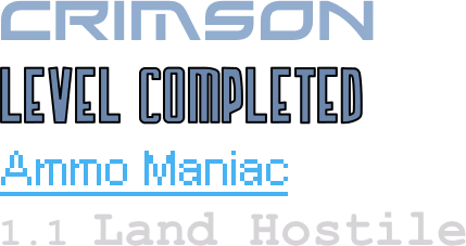 the identified fonts are xirod regular for the crimsonland logo (with a flipped m), armor piercing regular for the menu labels, pixel arial 11 for the small text, courier new bold for level names.