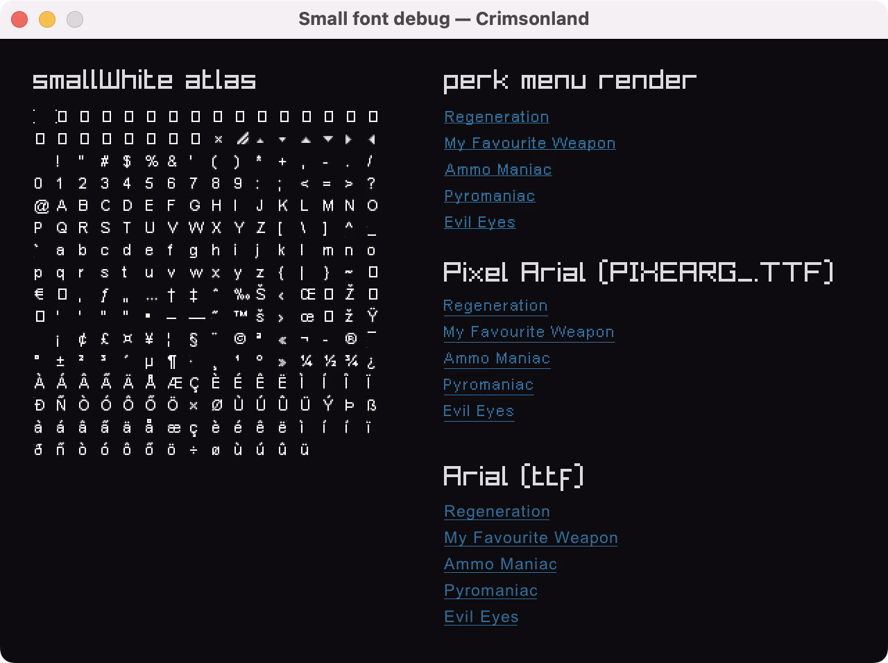 by now i have a full understanding of where all fonts in the game come from, so technically we can bolt on vector text rendering later. finding the fonts was a funny exercise on its own, you really need to get into the dev’s head. what was he thinking? ah yes, dafont.com.